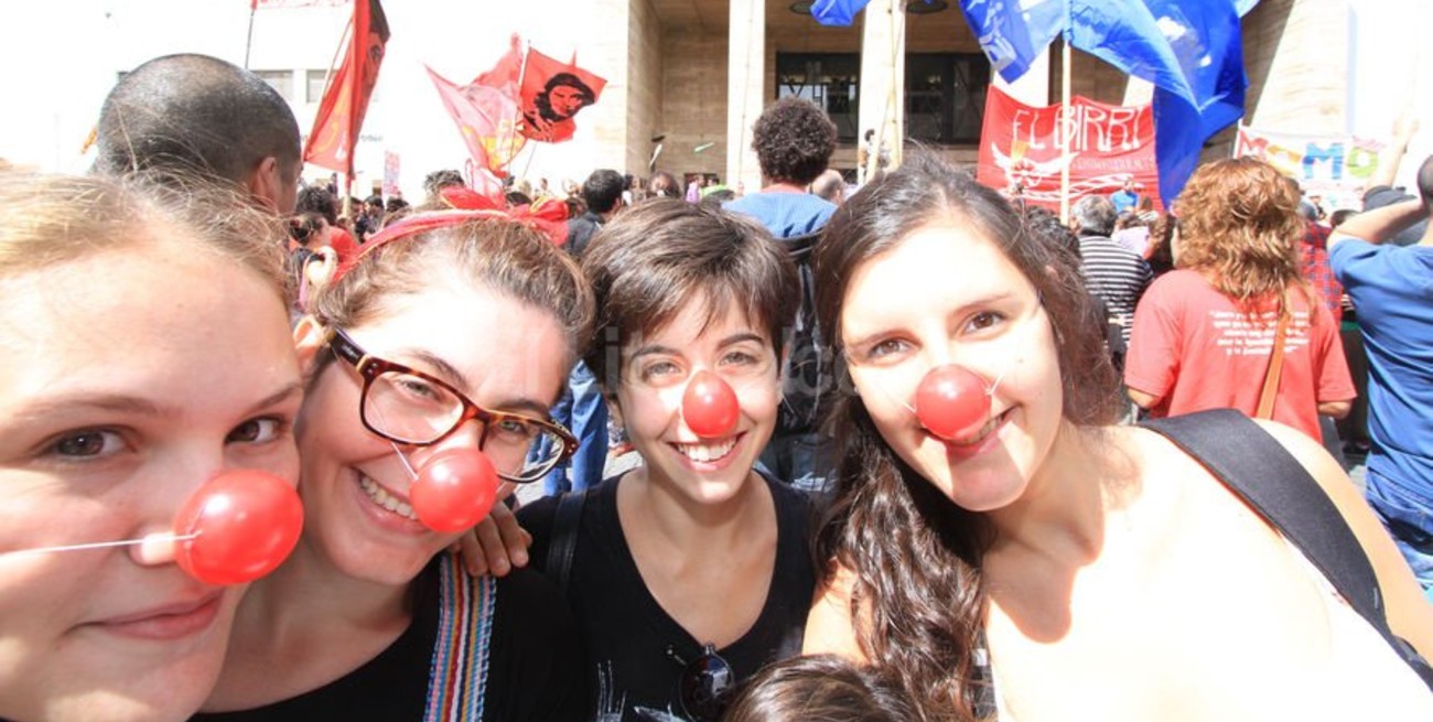 La columna de la manifestación llegó al Palacio Municipal por calle Salta encabezada por carteles del Movimiento Evita, la JP, el Partido Obrero y la agrupación Martín Fierro. No faltó el sonido de los tambores que al ritmo de la batucada alegraron la mañana en el microcentro y generaron un importante caos en el tránsito. También hubo payasos y malabaristas.