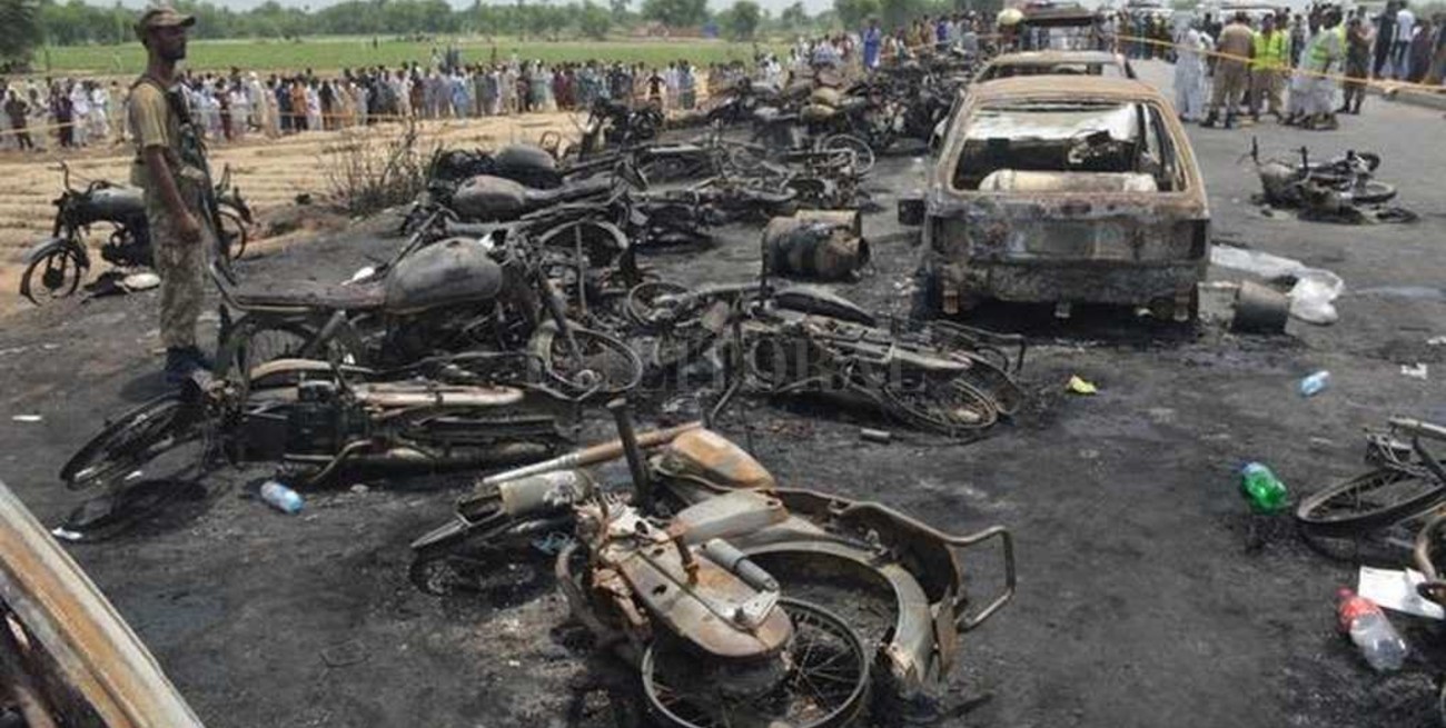 El camión iba a gran velocidad y volcó a primera hora de la mañana en una ruta nacional cerca de la ciudad de Bahawalpur y cuando los residentes se acercaron para recoger el combustible que se derramaba, hubo una explosión que arrasó con ellos.