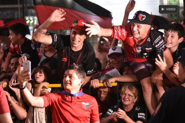 Los hinchas de Colón se concentraron en la puerta del hotel donde se aloja el plantel. Los jugadores salieron a saludar a los simpatizantes.