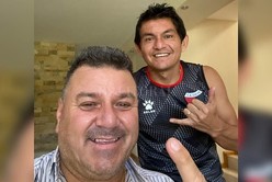 El vicepresidente Horacio Darrás, la mano derecha del presidente Vignatti como nexo con el "Barba" y los jugadores, fue quien recibió de manera solitaria en medio del frío y la llovizna al campeón vigente del fútbol argentino.