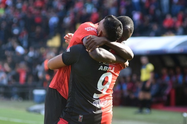 Los dos mejores. El colombiano Baldomero Perlaza armando juego y "Wanchope" Ramón Darío Ábila generando peligro en los metros finales de la cancha, dos de las banderas que hace flamear Colón de la mano de "Pipo" Gorosito. Crédito: Pablo Aguirre