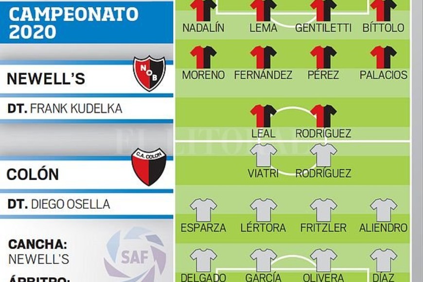 Si no aparecen complicaciones, el elenco que arrancará las acciones del choque ante Newell’s será: Leonardo Burián; Gastón Díaz, Emmanuel Olivera, Rafael García y Rafael Delgado; Rodrigo Aliendro, Matías Fritzler, Federico Lértora y Gabriel Esparza; Luis Miguel Rodríguez y Lucas Viatri.