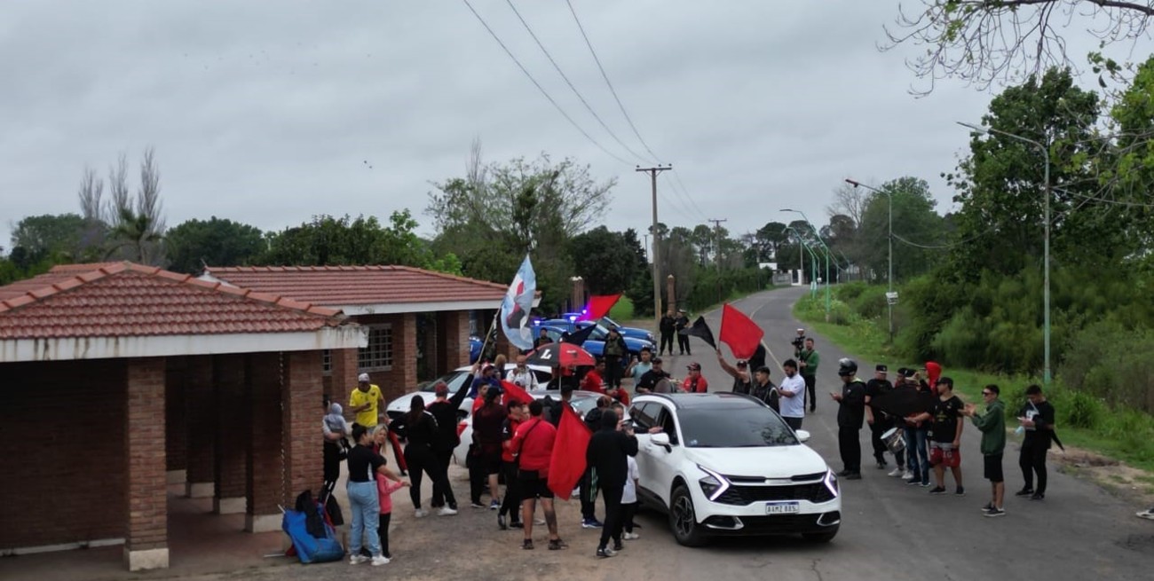 A días del partido contra Talleres, hinchas de Colón realizaron un banderazo en el predio