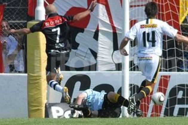 El disparo del goleador de Colón fue bien contenido por Tombolini, pero antes que toda la defensa de Olimpo, Moreno y Fabianesi, adelantado, llegó para anotar el segundo tanto.