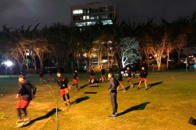 El plantel viajó desde Buenos Aires y arribó pasada la siesta a una de las ciudades más grandes del vecino país y de Latinoamérica. Horas más tarde, los jugadores realizaron los primeros movimientos físicos en las instalaciones del hotel.