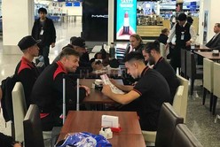 Casi en simultáneo, un buen número de hinchas emprendió viaje hacia San Pablo. Alguno vía aérea y otros, la gran mayoría, en colectivo.