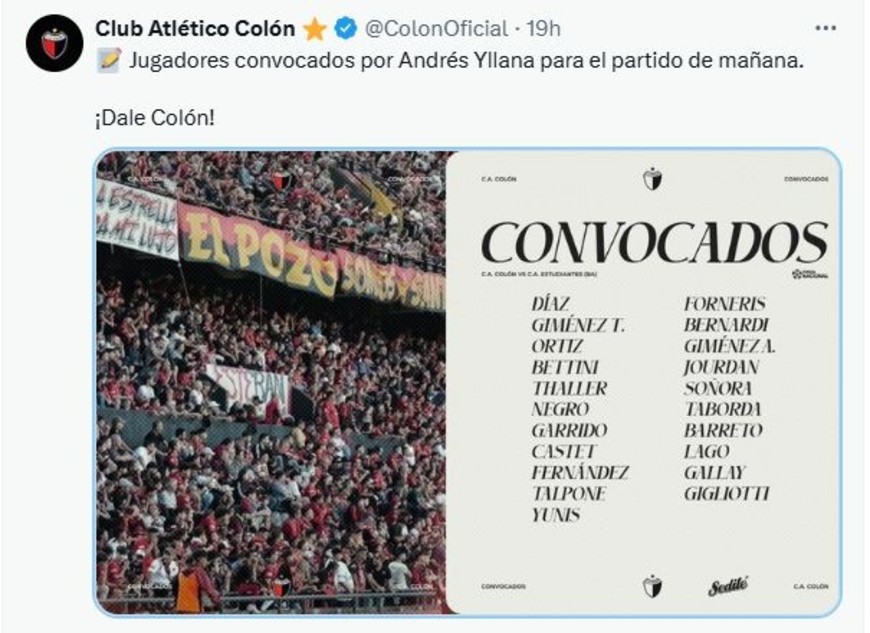 El club de Buenos Aires y su lista de convocados.