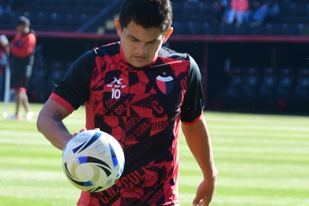 ¿El dueño de la pelota?. Luis Miguel Rodríguez, el último gran ídolo del pueblo sabalero, pisando el Cementerio de los Elefantes y con la pelota siendo parte de su cuerpo. ¿Será titular el de Simoca este lunes en el Bajo?. Foto: Manuel Fabatía.