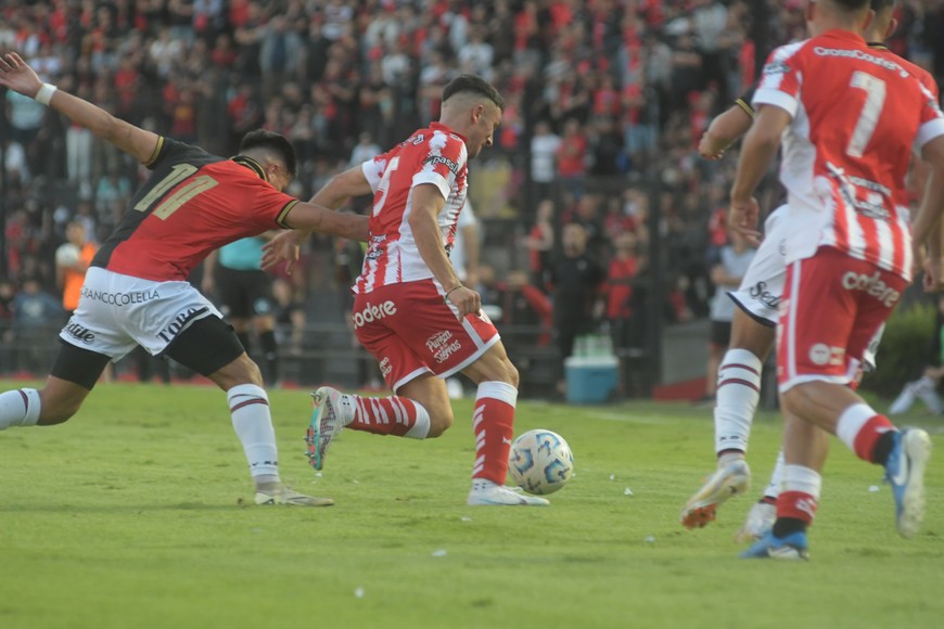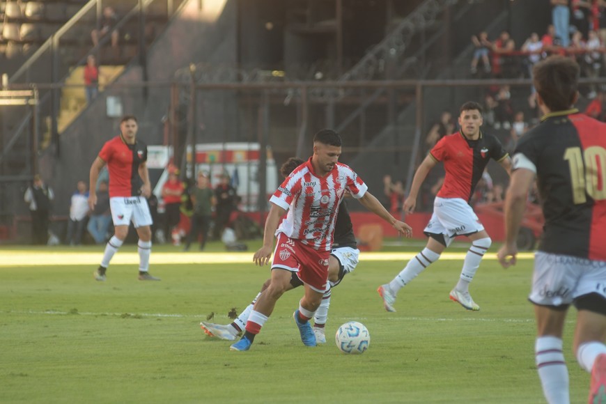 Disputado encuentro en el Brigadier López. El Sabalero aunque está impreciso en los pases tuvo un par de llegadas claras en los pies de Lago. El Albirrojo de Escalada se repliega y fricciona el desarrollo del juego, pero le cuesta en la zona ofensiva. Foto: Carolina Niklison.