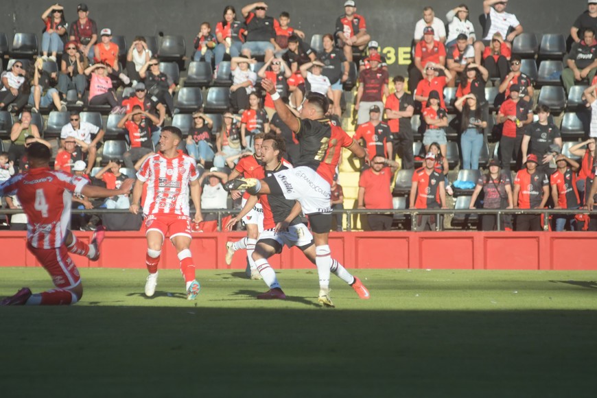 Estuvo cerca Facundo Sánchez con un cabezazo que sacó bien el arquero Tello. Foto: Carolina Niklison.