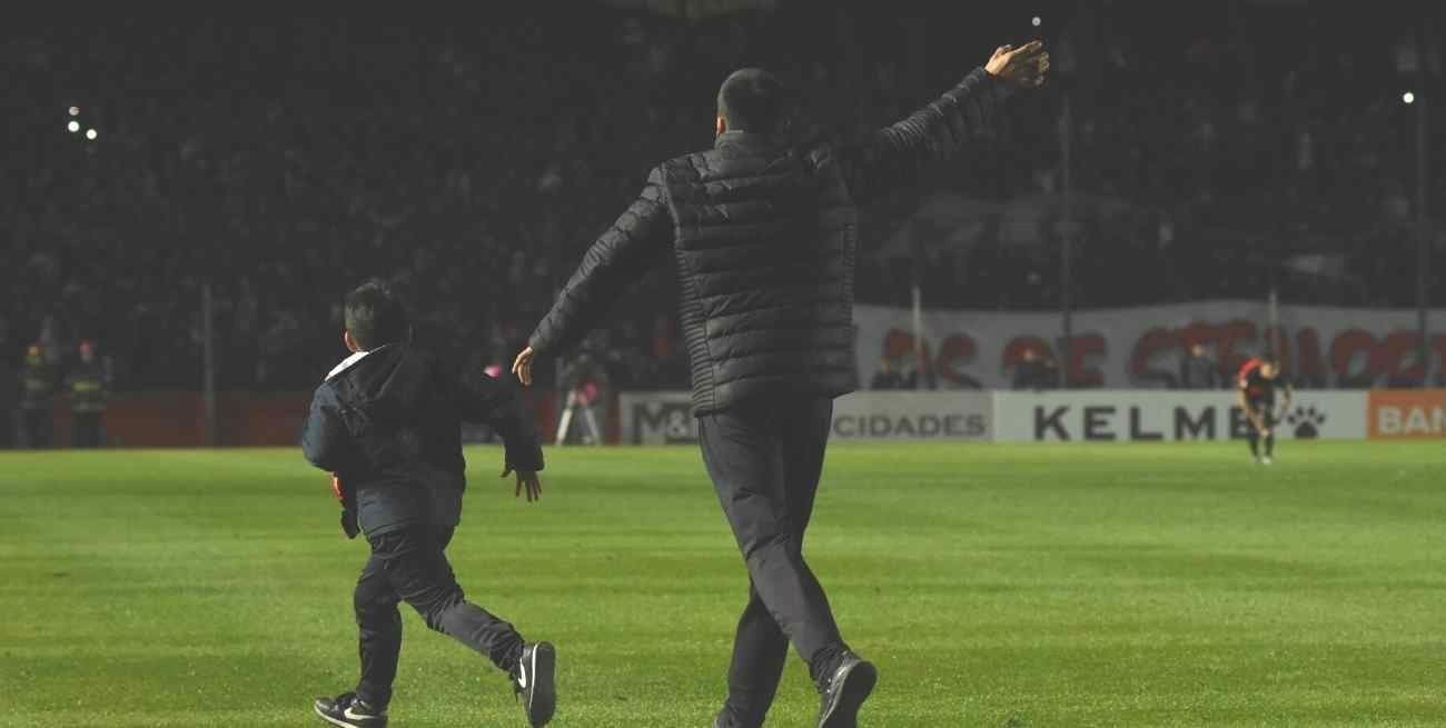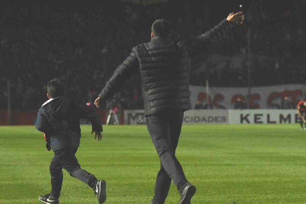 En ese instante, se metió desde el sector de plateas un chiquilín que fue detenido rápidamente por la policía. El Pulga observó de inmediato el hecho, se acercó al niño y le regaló el pantalón con el que había marcado los dos goles que le dieron la victoria a los sabaleros. El niño fue retirado de la cancha e ingresó otra vez al sector de las plateas del foso.