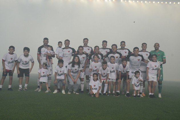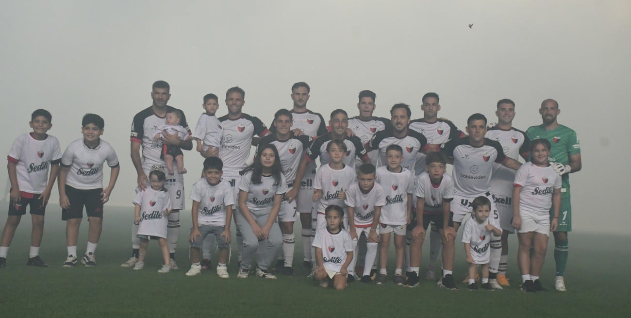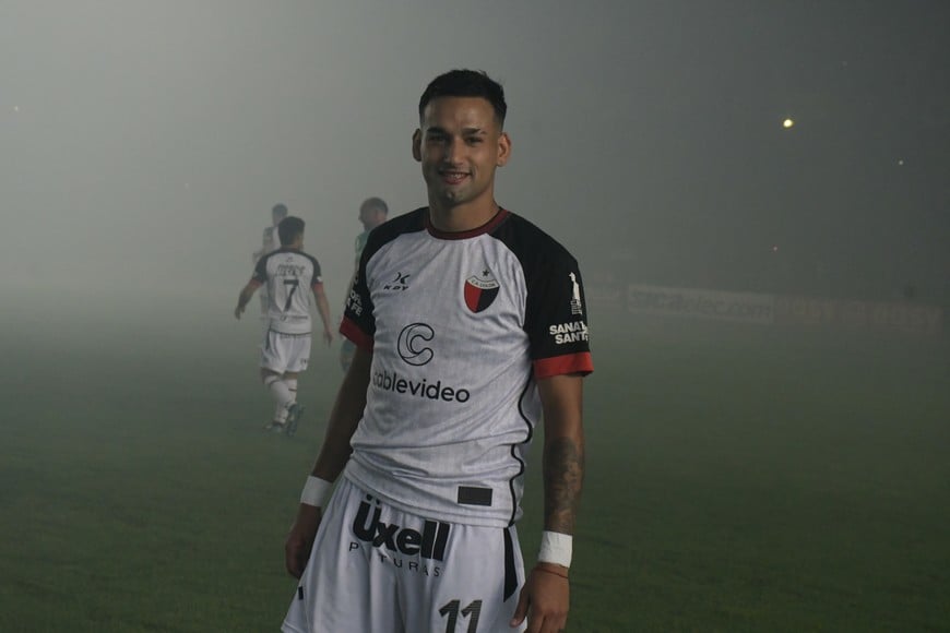 De punta en blanco y de...blanco a la punta de su zona: el Colón del "Pata" Ariel Pereyra que saltó al césped del Brigadier López para jugar y ganarle a Chaco For Ever en un repleto Cementerio de los Elefantes. Ahora, este domingo, será visitante del Mirasol en La Fragata de Isidro Casanova. Crédito: Manuel Fabatía