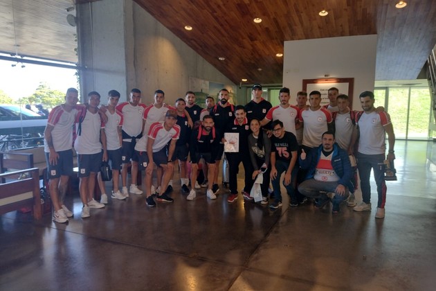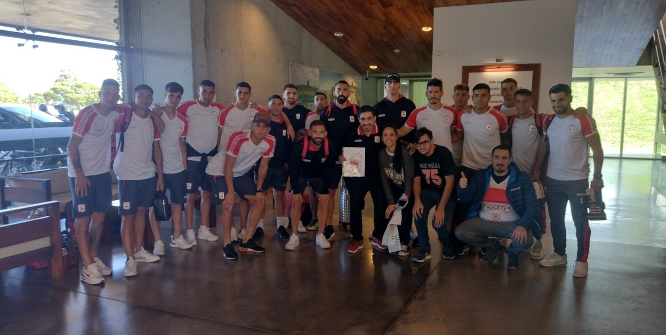 Dianela y Yamil junto al plantel de Morón en la concentración, cuando el Gallo jugó contra San Martín de Tucumán en la cancha de Unión por la Copa Argentina