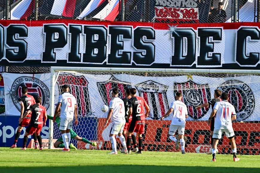 Pero esa fuerza aérea de Chacarita tuvo su premio en el momento más crítico para el local y favorable para Colón. Córner desde la izquierda y la cabeza del grandote Andueza le dio otro golpe durísimo a Colón.