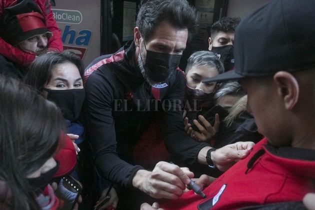 Telam Eduardo Domínguez firma autógrafos y camisetas antes de la partida hacia el Monumental, en la puerta del hotel sabalero.Telam Eduardo Domínguez firma autógrafos y camisetas antes de la partida hacia el Monumental, en la puerta del hotel sabalero.