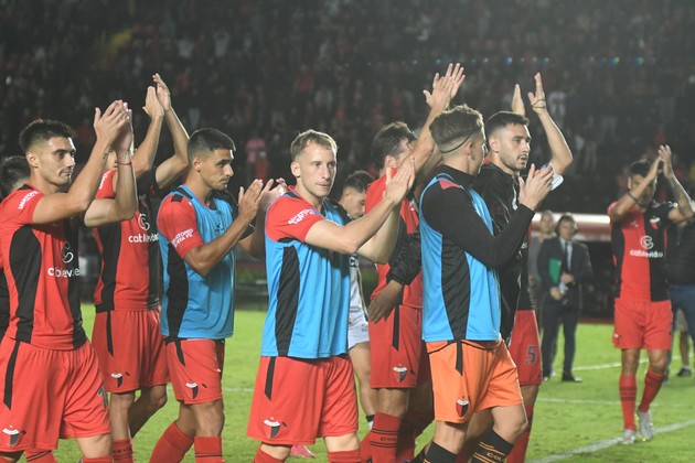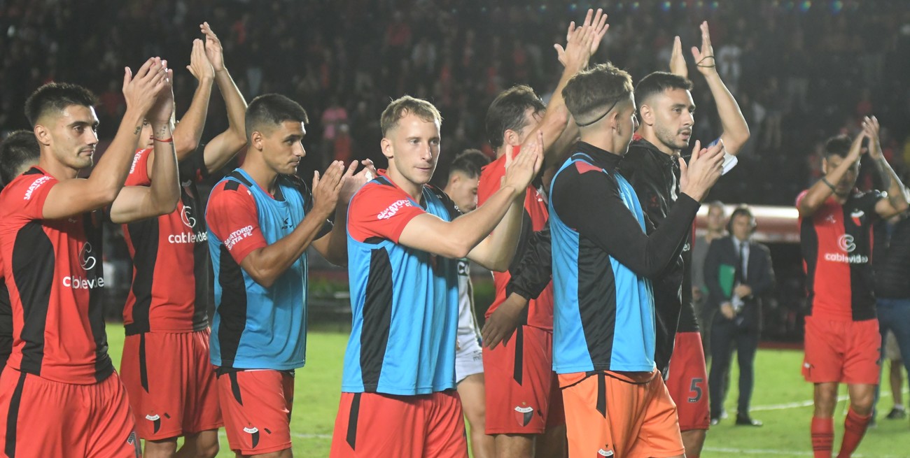 El festejo por la victoria ante Nueva Chicago, que Colón quiere repetir este sábado ante Morón. Crédito: Manuel Fabatía