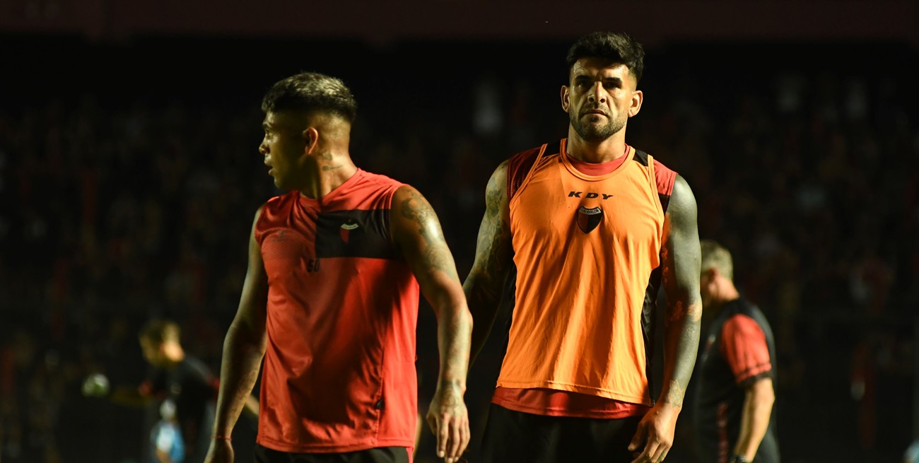 Javier Toledo junto a Brian Guille. El delantero tiró fuerte contra el "colega" que lo lesionó y el cuerpo técnico de Gimnasia y Tiro de Salta. El volante entró muy bien como delantero ante Chicago y es candidato a volver a la titularidad el sábado. Crédito: Mauricio Garín