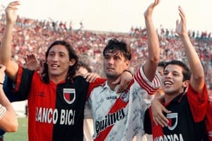 Mientras que Bonano; Hernán Díaz, Trotta, Altamirano y Sorín; Monserrat, Astrada, Verti y Gallardo; Francéscoli y Salas, los once de River, quien fue campeón de ese torneo.