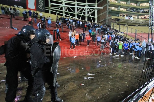 Dirigentes cordobeses denunciaron públicamente a la policía santafesina por su actitud hacia los hinchas cordobeses, a quienes -según sus dichos- hicieron venir por un lugar no habitual y por las agresiones con agua y balas de goma en el momento de la rotura del alambrado.