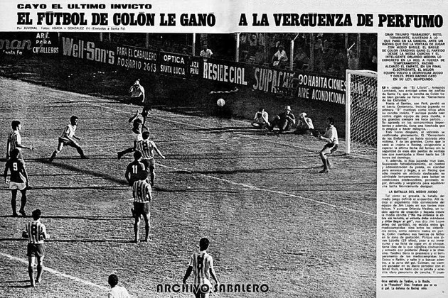 Juvenal (Juan Carlos Pasquato) escribió en "El Grafico" que "Cayó el último invicto. El fútbol de Colón le ganó a la vergüenza de Perfumo", agregando en una llamada: "Gran triunfo sabalero, neto, terminante, ajustado a lo que pasó en la cancha, ante un Racing que dio ventaja de jugar con medio Basile. El Basile de Colón (Alberto Pompeo Tardivo) ganó el partido desde la media cancha y el inteligente Orlando Medina Leites lo concretó en la red. A fuerza de temperamento, Racing alcanzó el empate, en un final electrizante, el mejor equipo volvió a desnivelar con juego y goles. Pero Racing Club cayó en su ley: guapeando".