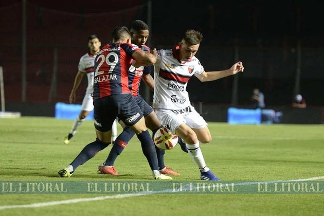 A poco de comenzado el partido en el Brigadier López, el visitante se puso rápido en ventaja. Fue a los 5’, cuando metieron un pelotazo al corazón del área, Blandi la bajó (con el pecho y también con el brazo) y definió con una media vuelta cruzando la pelota al palo más alejado de Burián, en una floja respuesta de la defensa rojinegra.