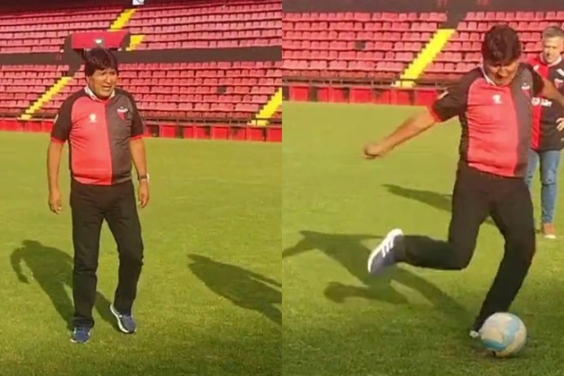 Durante su visita por la ciudad de Santa Fe, el ex presidente de Bolivia, Evo Morales, visitó este jueves el estadio de Colón, se puso la camiseta sabalera y hasta se dio el gusto de patear penales en el Brigadier López.