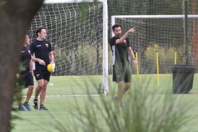 Así, con el “Barba” en campo y seis colaboradores más, hoy arrancó la segunda parte de Eduardo Domínguez en Colón. “Estoy muy feliz de estar acá...”, fue la frase más repetida por el reemplazante de Osella. Tanto ayer, cuando llegó, como hoy cuando bien temprano llegó al vestuario. Finalmente, no lo acompañaron ni Vignatti ni Darrás: lo hizo José Alonso, otro de los vice.