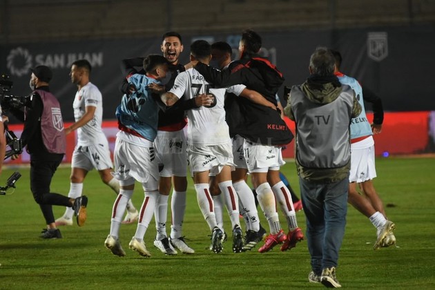 Al mismo tiempo, varios de los jugadores comenzaban a llegar al vestuario del hermoso estadio sanjuanino. Y, de golpe, se armó el agite y el "cachengue" como si fueran hinchas. Entonces, en medio del silencio de un estadio pandémicamente vacío, el cantito de guerra del plantel sonó clarito: "¡Señores ya pasó Colón...señores ya pasó Colón...se lo dedicamos a todos...la re... madre...que lo reparió!".