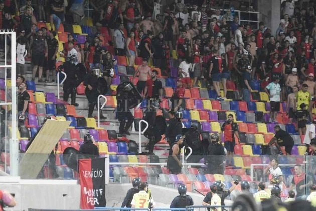No fue por la reacción y expulsión de Delgado, quizás tampoco por el canto de la gente de River hacia la de Colón (“equipo chico la p… que lo parió”), sino por la reacción desde ambas parcialidades, tirándose con botellas de plástico con agua desde un lugar al otro (una de ellas impactó en la cabeza de un pequeño), que no sólo obligó al desalojo rápido de ese sector (donde confluyen la platea este de Colón con la popular norte de River) sino que impulsó a la policía a agilizar la salida de los simpatizantes sabaleros una vez concluido el partido.