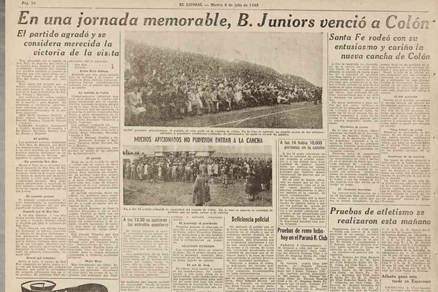 Hace 75 años, la ciudad vibraba. Llegaba Boca a Santa Fe. El Litoral de ese día cuenta en sus páginas que entraron más de 15.000 personas en la cancha, que quedó gente afuera, que la recaudación fue récord para la época. No era por Boca, solamente. Es que Colón inauguraba ese día su nueva cancha, la actual, la que se emplazó en ese terreno descampado y despoblado de 1946, cerquita del Salado, después de arduas gestiones que se habían iniciado a fines de la década del '30, momento en el que fue adquirido el terreno.