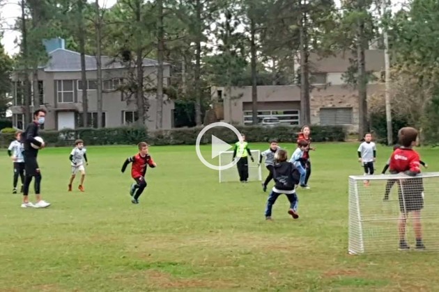 En las fotos y videos que circularon, se lo ve al técnico rojinegro dando indicaciones y enseñándole a los niños algunos movimientos que a diario realizan los jugadores de fútbol. El propio DT llevó las pelotas y demás elementos como arcos, redes, conos, etc.