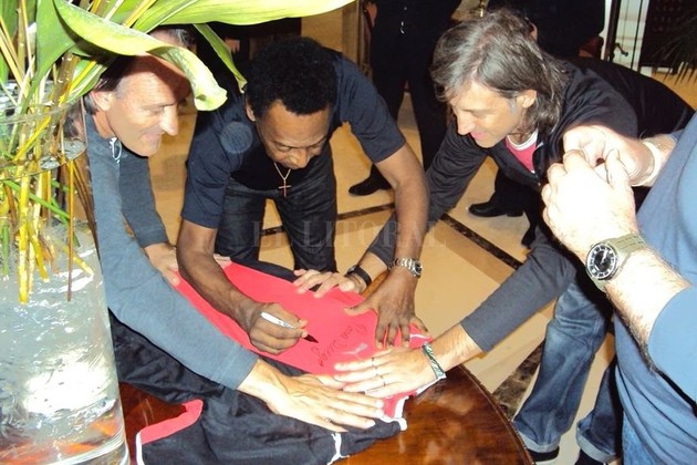 —¡Y hasta te diste el gusto de la fotito y la camiseta de Colón firmada por el mismo Pelé!