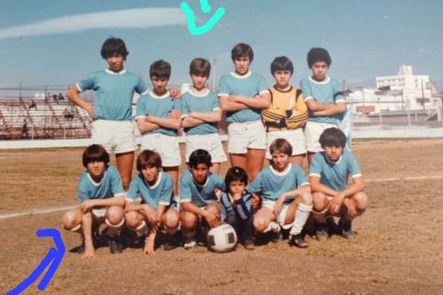 El Litoral Pizzi arriba, Poletti abajo. Juanchi , arriba, ya era 9 de chico; el Mono , abajo, era 6 ó 3 . La camiseta celeste de la provincia.
