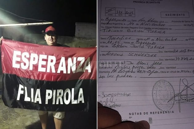 La realidad es que el equipo no ganó la Copa Sudamericana en la cancha pero sí en las tribunas. El pequeño nació el 10 de noviembre a las 11.05 y el padre lo inscribió en el Registro Civil de esa ciudad como “Tiziano Burián Pirola”, según el acta 371 del tomo 3 del día 14 de noviembre.