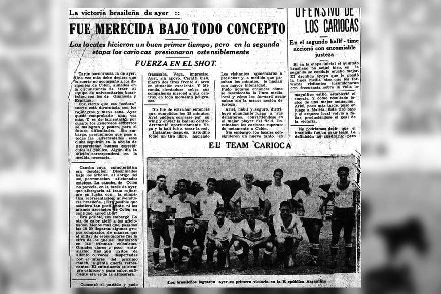 “Todo un acontecimiento deportivo ha de constituir para la afición santafesina, la presentación del fuerte conjunto de football integrado por estudiantes brasileños quienes en los dos encuentros realizados en Buenos Aires, han demostrado homogeneidad y suma eficiencia”, describió el vespertino.