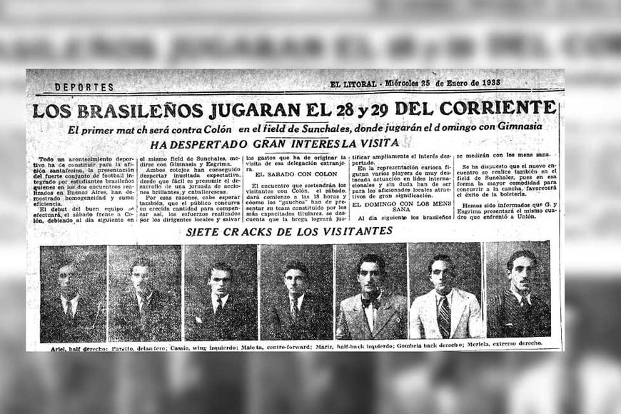 El 25 de enero del ‘33, diario El Litoral anunciaba entre sus páginas que el 28 y 29 del corriente mes se disputarían los dos encuentros y en el artículo se mencionaba a los “siete cracks” de los visitantes con fotografías incluidas.