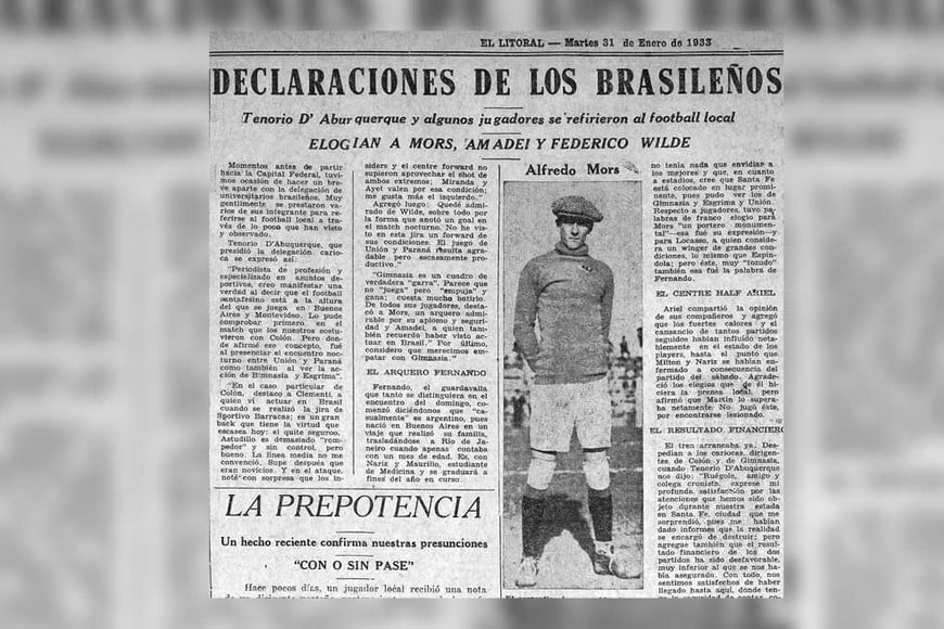 Antes de su partida, integrantes de la delegación brasileña que jugó en Santa Fe brindaron sendas entrevistas a El Litoral. El diario las reprodujo el martes 31 de enero de 1933.