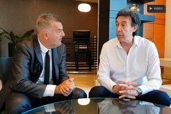 Cuando irrumpe Alejandro Domínguez, el presidente de la Conmebol, lo hace con una sonrisa de oreja a oreja. Pantalón de saco, zapatos para saco, camisa para saco...todas esas cosas juntas pero sin el saco. Lo noto físicamente mucho más entrenado y atlético que lo que se puede dejar ver por las foto o por la tele.