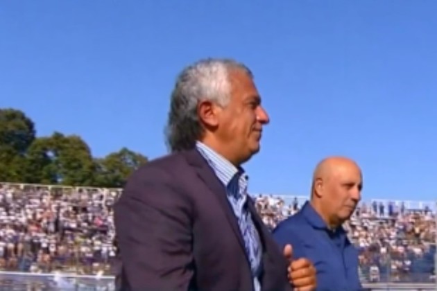Desde los cuatro costados hubo una gran ovación para Pipo Gorosito cuando ingresó al campo de juego, antes de que lo hagan los futbolistas de Colón y de Gimnasia.