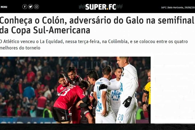 “Conheça o Colón, adversário do Galo na semifinal da Copa Sul-Americana”, (Conozca a Colón, adversario del “gallo” en la semifinal de la Copa Sudamericana), titula “Super FC” la sección deportiva del diario “El Tiempo” de Belo Horizonte.