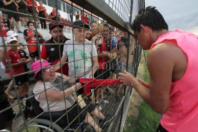 Al finalizar el triunfo de los dirigidos por Julio César Falcioni ante Barracas Central en un ajustado 2 a 1, el “Pulga” se acercó al alambrado y se dirigió directamente a saludar a la “sabalera”.
