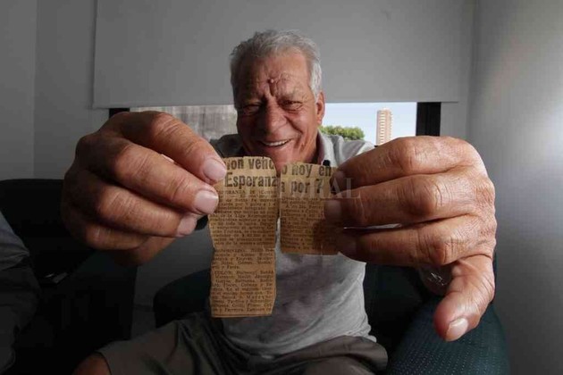 Mauricio Garín En una visita a El Litoral mostró un recorte de diario que guardaba con una participación inicial suya en el fútbol.