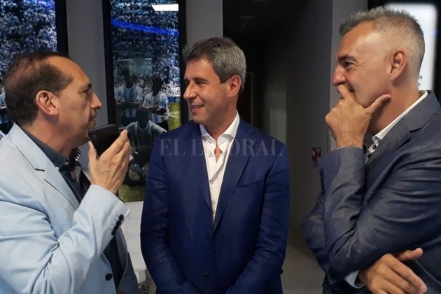 Cuando El Litoral y En El Área TV llegaron al predio de la AFA en Ezeiza, el presidente Claudio Tapia estaba reunido con el Gobernador de su tierra natal, San Juan, Sergio Uñac.