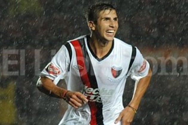 El sueño se hace realidad. Lucas Mugni (junto a Jonathan Bauman) debuta en primera contra Atlético Tucumán el 2 de mayo de 2010 en el Brigadier López. Reemplazó a “Ricky” Gómez y jugó todo el segundo tiempo. Foto: Pablo Aguirre