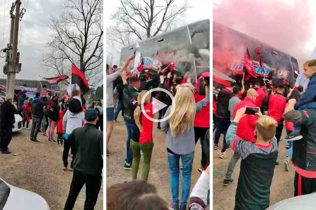“Muchas gracias, jugadores...gracias por salir campeones...”, cantaban los fanáticos rojinegros al momento que el colectivo con la delegación sangre y luto abandonaba la concentración.