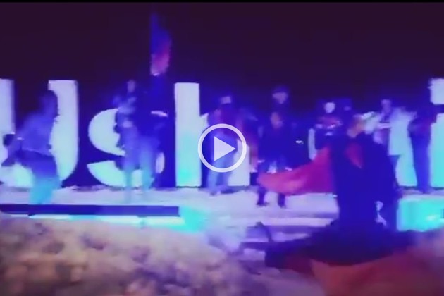 En el video, se observa a cerca de 10 personas con camisetas de Colón cantando en el cartel con el nombre de la ciudad.