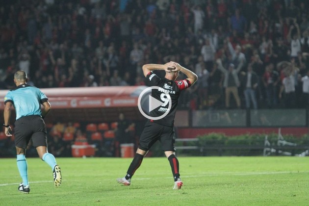 En el rebote lo tuvo Bernardi, pero otro defensa charrúa tapó el remate con el pecho. Una vez más le quedó en los pies al "10" de Colón, pero se le fue por arriba del travesaño.