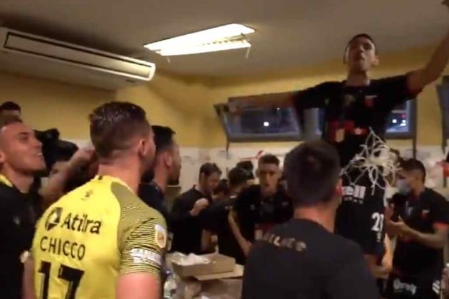 Allí, el plantel junto a dirigentes y cuerpo técnico celebraron la victoria histórica con bombos y canciones.