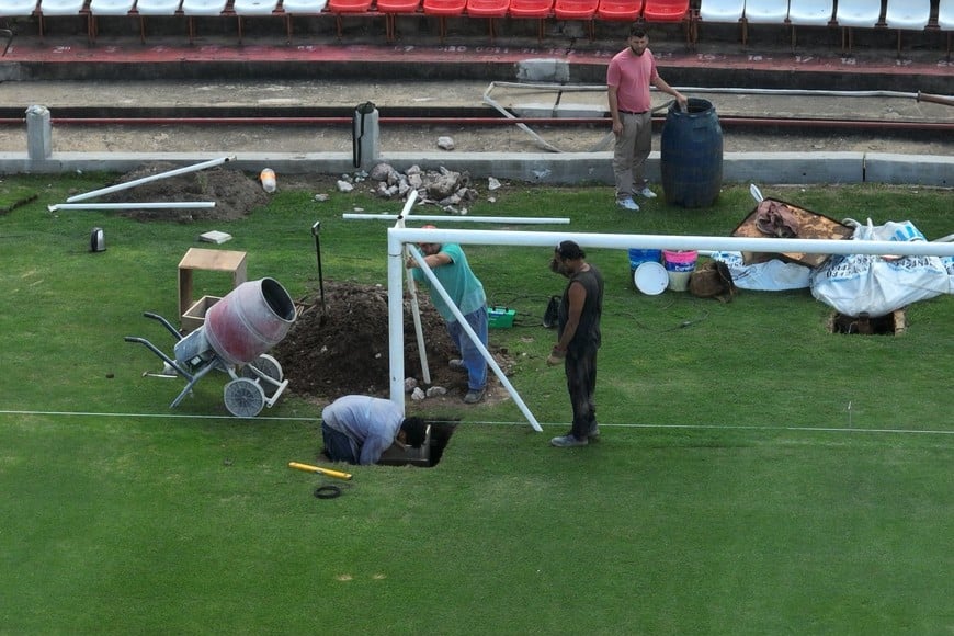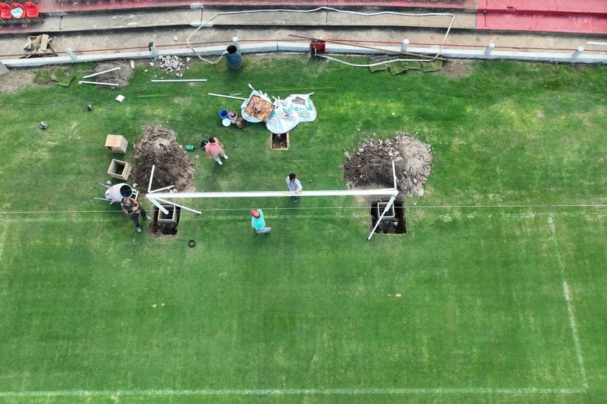 En cuanto a porqué hay tanta gente trabajando en el césped de la cancha, el mismo Pecantel explica que “estamos con el tablero, las ménsulas, las estructuras y el tendido de cables hasta las nuevas columnas”.