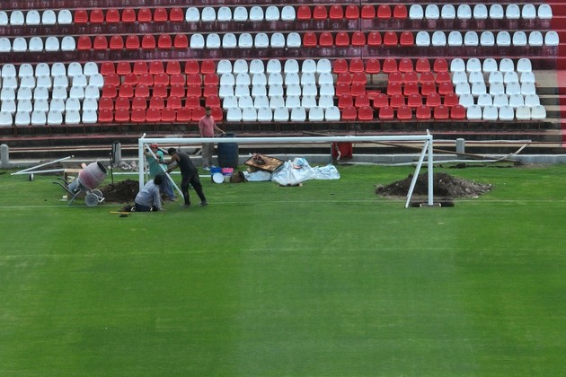 El teatro de los sueños del pueblo tatengue, que tiene su “joyita” en esa impecable alfombra verde que distingue a López y Planes, es por estas horas un “desfiladero” de técnicos, obreros, cancheros, electricistas, etc.